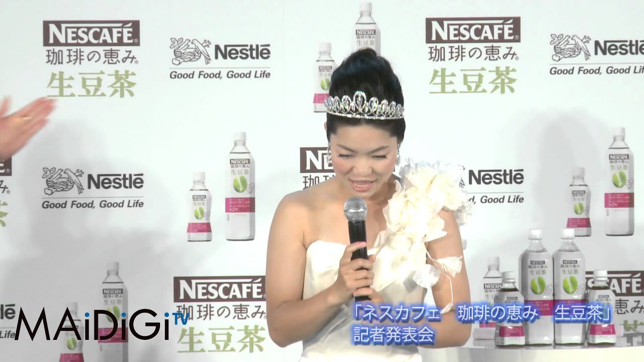 お笑い芸人のイモトアヤコさんが30日、東京都内で開催されたネスレ日本の新商品「ネスカフェ 珈琲の恵み 生豆茶」の記者発表会にウエディングドレス姿に身を包み、いつもの太眉メークではなく、ナチュラルメークで登場した。桂由美さんがデザインしたドレスやダイヤモンドのティアラなど総額約3億3000万円の衣装を身にまとったイモトさんは、「ウエディングドレスを着るのは初めて。女として満足しました。オーダーメードかと思うほど、しっくりくるし、似合う。(胸に)パッドは7枚入っているけど」と自画自賛し「珍獣だけでなくイケてるメンズをつかまえないと。品川プリンスの飛天の間で(結婚式の)生中継できるように頑張る」と意欲を燃やした。