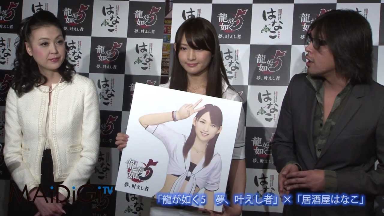 このほか発表会では、全国の同居酒屋30店舗でメニューに「龍が如く5宴会コース」を設定することが発表され、ゲームに登場する5大都市にちなんだ大阪の大粒タコ焼きや、札幌の若鶏のザンギなど、ご当地メニューを含む7品の試食会が行われた。同ゲームの横山昌義プロデューサーは「各土地の文化を伝える時、食文化が重要になる。ゲームなら主人公が食べることができるけれど、はなこに来れば、5都市を舌で全部味わえる。いいコラボができたと思う」と語った。愛知県出身の鈴木さんは名古屋のみそカツ串を食べ、「おいしい! 地元の味がしてます」と太鼓判を押していた。