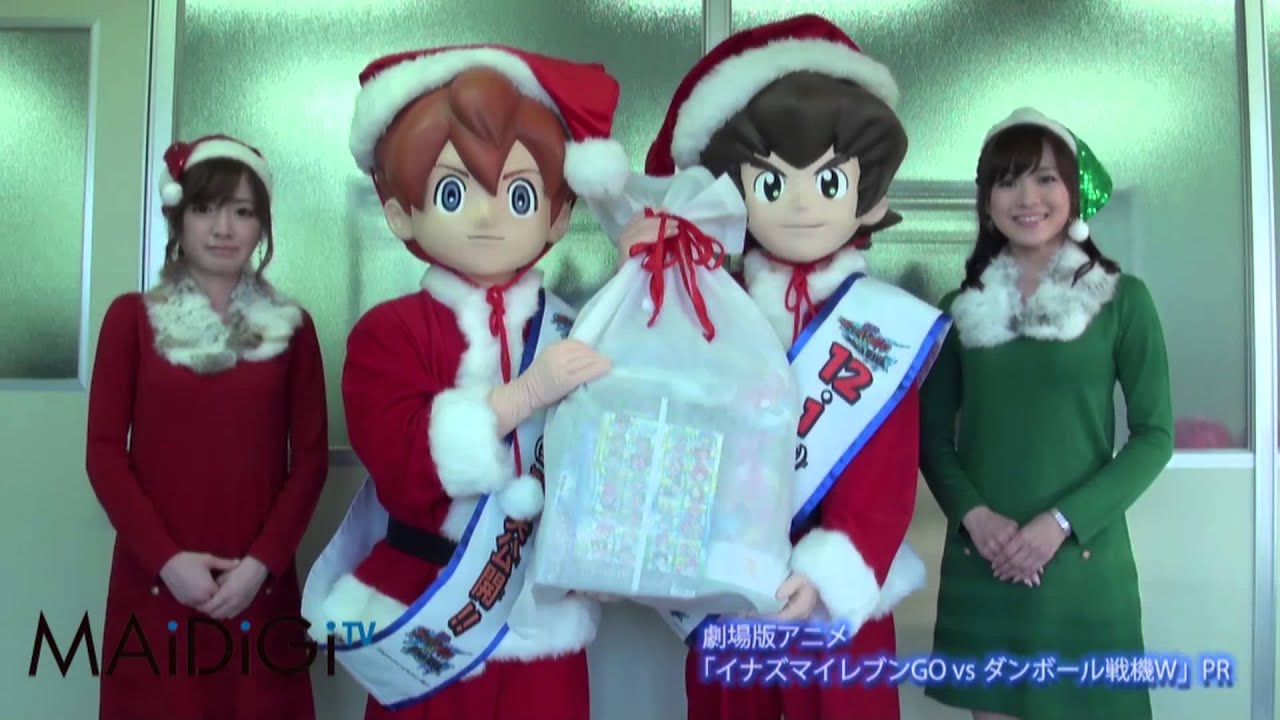 作品の見どころについて、紺野アナは「人気の二つのアニメが“共演”するところ。そして世界の危機に立ち向かう(イナズマイレブンの主人公)天馬くんの表情」、繁田アナは「(両作品の主人公が)自分の好きなものの魅力を教え合い、交流するシーンですね。強い敵と戦う前に気持ちを高めていくシーンもすてき」と話していた。紺野アナと繁田アナはサンタクロースをイメージしたワンピース姿で登場、一足早いクリスマスプレゼントを編集部に配り、作品をPRした。