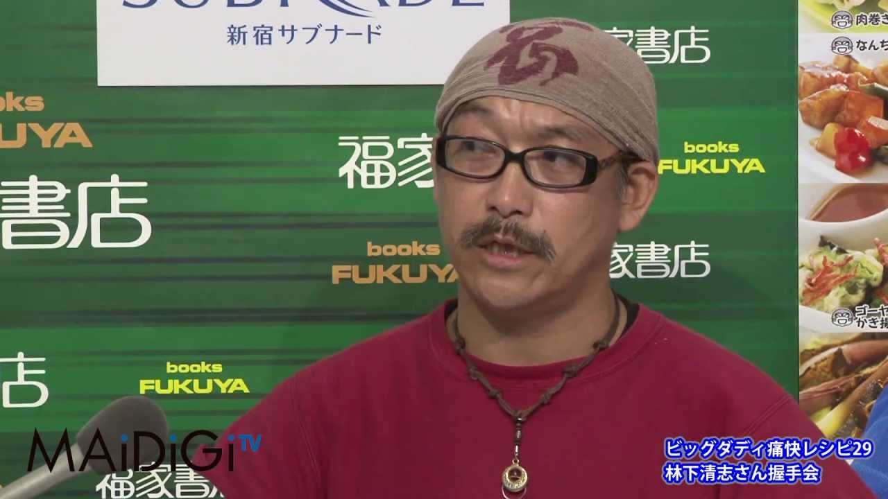 レシピ本「ビッグダディ痛快レシピ29~こんな工夫で旨い!安い!まさかのご馳走!~」(小学館、890円)は、林下さんが考案したギョウザの皮を使ったピザや、オレンジジュース入りのカレーライスなど、オリジナル料理計29品を掲載。子供や料理に対する思いを語ったインタビューも掲載されている。イベントには、長男の新志(あらし)さん、次男の熱志(あつし)さん、次女の柔美(よしみ)さんも駆けつけ、家族連れなどファン150人が集まった。(毎日新聞デジタル)