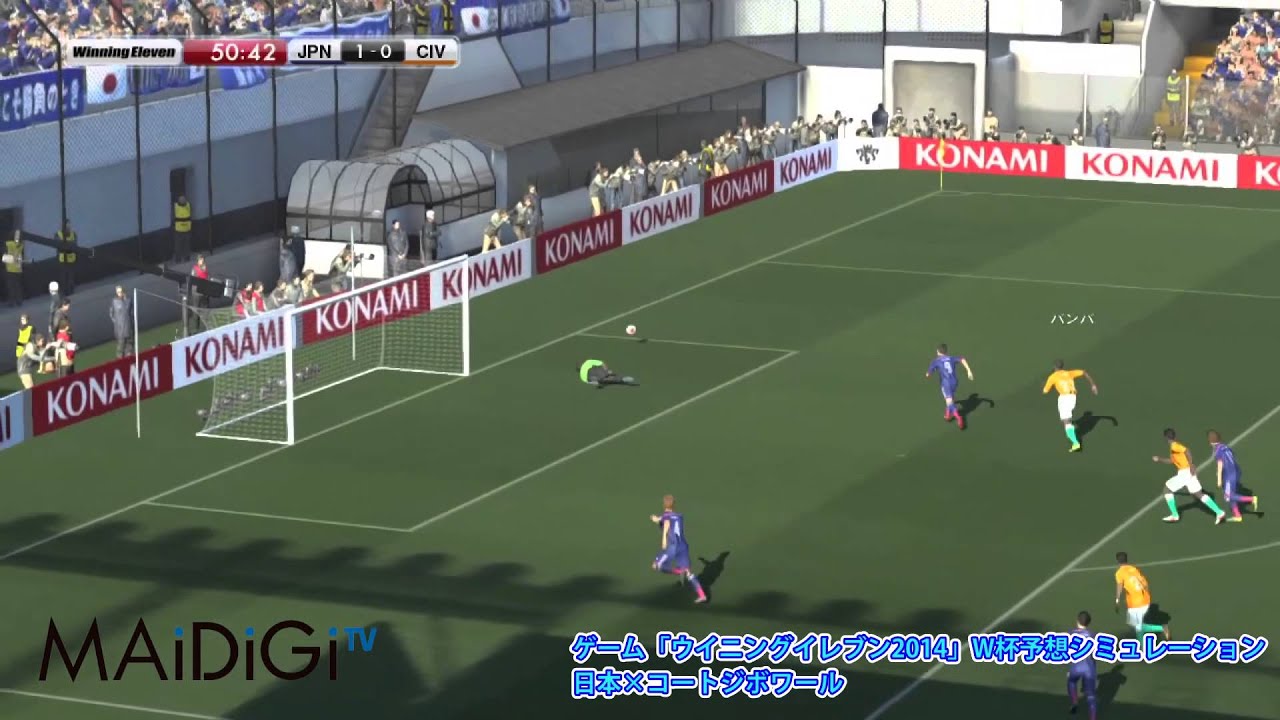 シミュレーションに使ったゲーム「ワールドサッカー ウイニングイレブン 2014」はPS3、PSP、ニンテンドー3DSの3種類があり、今作ではグラフィックやモーション(動き)が大幅に向上し、選手の表情やユニホームの質感、ボールの動きなどを忠実に表現。日本など各国代表はもちろん、世界のクラブチームでプレーすることができる。また、人気の「マスターリーグ」では、各国のクラブを率いるだけでなく、代表の監督に就任することもできるようになった。(毎日新聞デジタル)