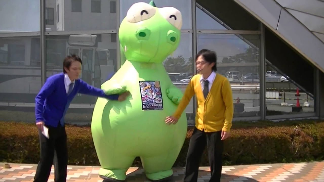 僕たち「三重県住みます芸人」のカツラギが紹介したいのは、津市にあるボートレース津のメインキャラクターのツッキーくんです。皆さんはツッキーくんといわれてもピンとこないかもしれませんので、ツッキーくんがどのようなキャラクターかについて少しお話ししたいと思います。