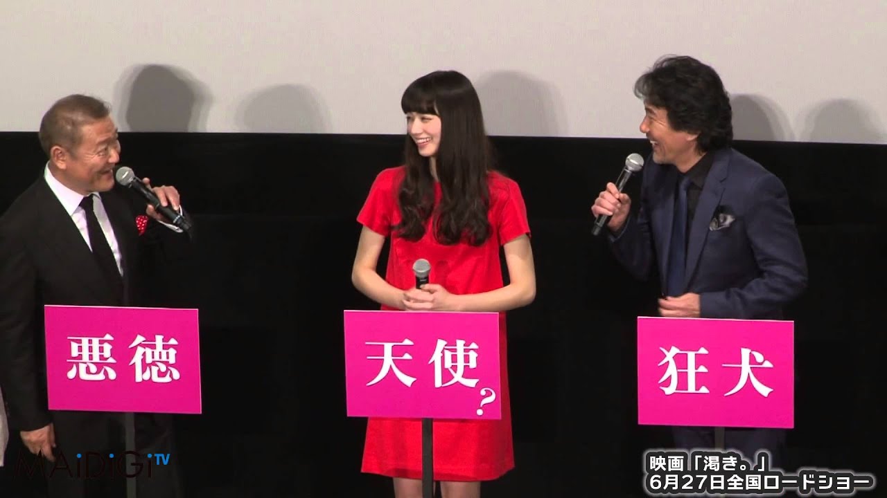 映画は、深町秋生さんの小説「果てしなき渇き」が原作。元刑事の藤島昭和が、失踪した娘・加奈子の行方を追う姿を描く。藤島を役所広司さん、加奈子を新人の小松菜奈さんが演じるほか、中谷さんや妻夫木聡さん、二階堂ふみさん、清水尋也さん、橋本愛さん、國村隼さん、オダギリジョーさんらが出演する。27日に公開。