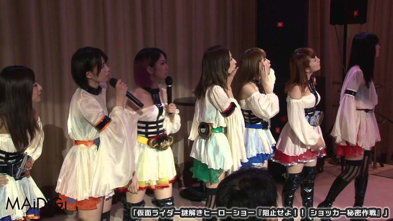この日の発表会には、仮面ライダー1号、ショッカー戦闘員に加え、「仮面ライダーシリーズ」40周年を記念して結成されたガールズユニット「仮面ライダーガールズ」と“最強の地下アイドル”と呼ばれるアイドルグループ「仮面女子」も登場。「人類洗脳」編と「都市破壊」編のプレ公演も開催され、仮面ライダーガールズと仮面女子のメンバーは頭と体を使って謎解きに挑戦した。