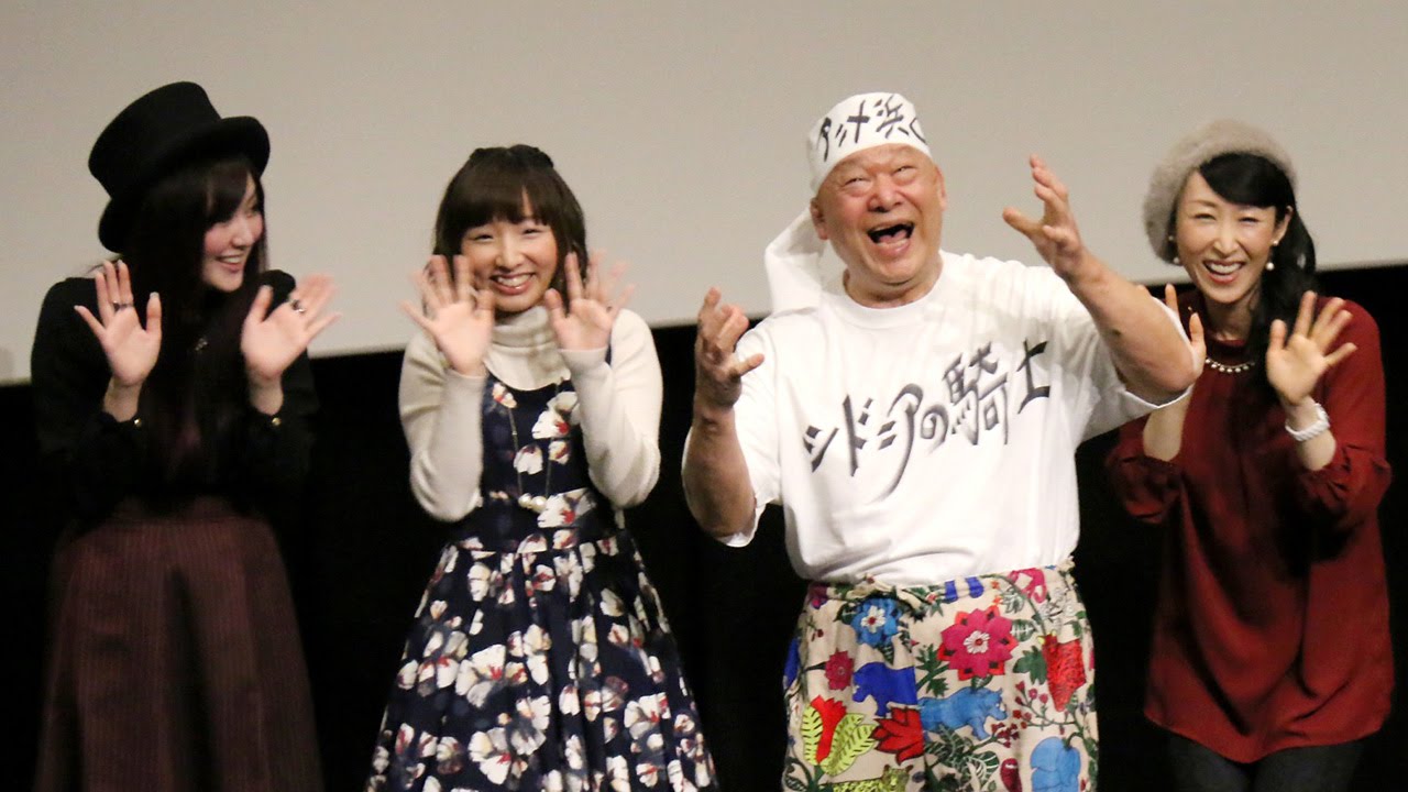 この日、アニマル浜口さんは「アニメ浜口」として出演。「アニメ浜口」と書かれたはちまきをしめ、「シドニアの騎士」と書かれたTシャツを着て、大ヒットを祈願して「シドニアだー!」と10回絶叫。「困ったと言わない男、長道! この世に絶望はない、ネバーギブアップ、エバーギブアップ!」と声を大にすると、星白閑(ほしじろ・しずか)役の洲崎綾さんは「私も万策尽きても、ネバーギブアップで頑張りたいと思います!」とうなずいた。舞台あいさつには、仄(ほのか)姉妹役の喜多村英梨さん、小林艦長役の大原さやかさん、静野孔文監督、瀬下寛之副監督も登場した。