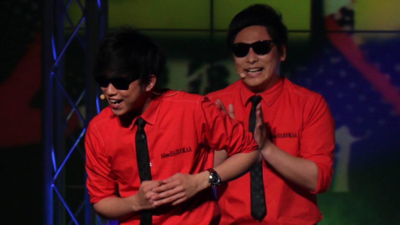 おなじみの赤いシャツを封印し、そろいの黒のジャケット姿でセンターマイクをはさみ行った初の漫才では、田中シングルさんが突っ込み、はまやねんさんがボケを担当。田中さんの「先輩のまねをしてもしょうがない。自分らの言葉で伝えなくては」との言葉通り完全オリジナルで、漫才終了とともにステージに現れた藤崎マーケットのトキさんは「練習時間のない中、良くやった。素晴らしい」と絶賛。その一方で「リズムネタ、まだやっていたろ。まだわからんのか、リズムネタは体ボロボロになる」と愛のあるダメ出しも忘れなかった
