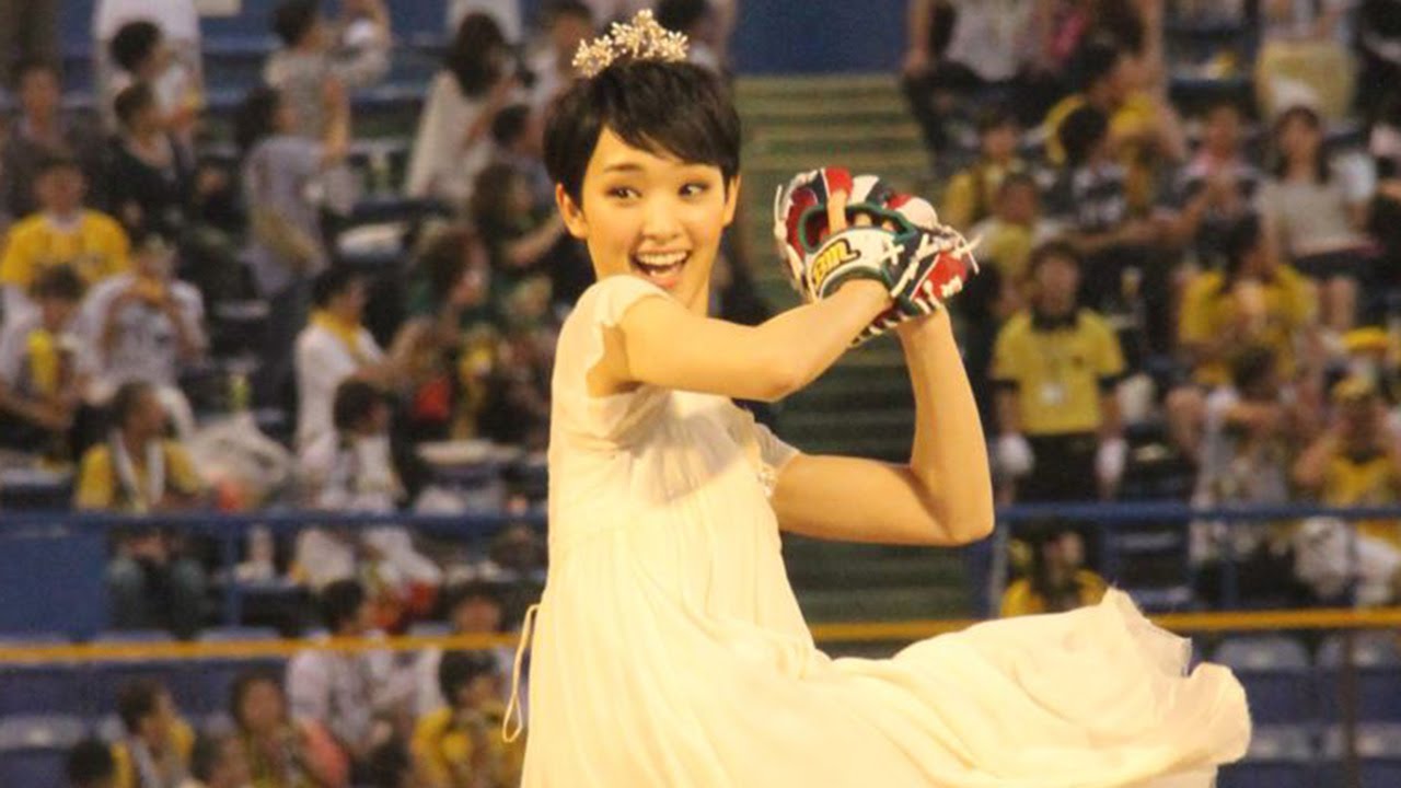 剛力彩芽:純白ドレスで始球式 ノーバンならずも「いい球投げられた」