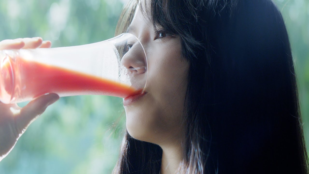 宮崎あおいさんが出演する「カゴメトマトジュースプレミアム」のCMの一場面