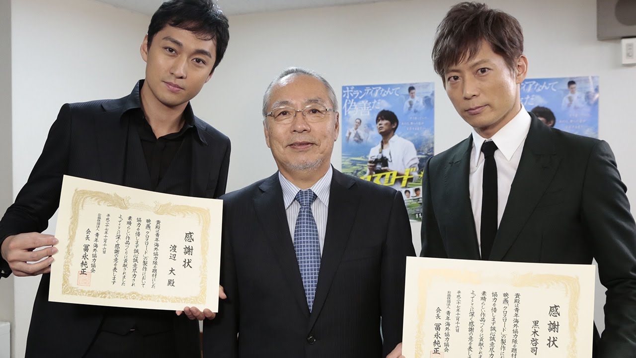 ダンス&ボーカルグループ「EXILE」の黒木啓司さんが青年海外協力隊50周年記念映画となった初主演映画「クロスロード」(28日公開、すずきじゅんいち監督)で共演した渡辺大さんとともに、青年海外協力協会の冨永純正会長から感謝状を贈られた。授与式は16日、同映画の完成披露試写会の直前に行われ、黒木さんは「自分としても初主演作ということで、本当にスタッフと共演者の方々に見守ってもらいながらできました。これを通してたくさんの方に協力隊を知ってもらい、ボランティアの素晴らしさを伝えていきたい」と語った。