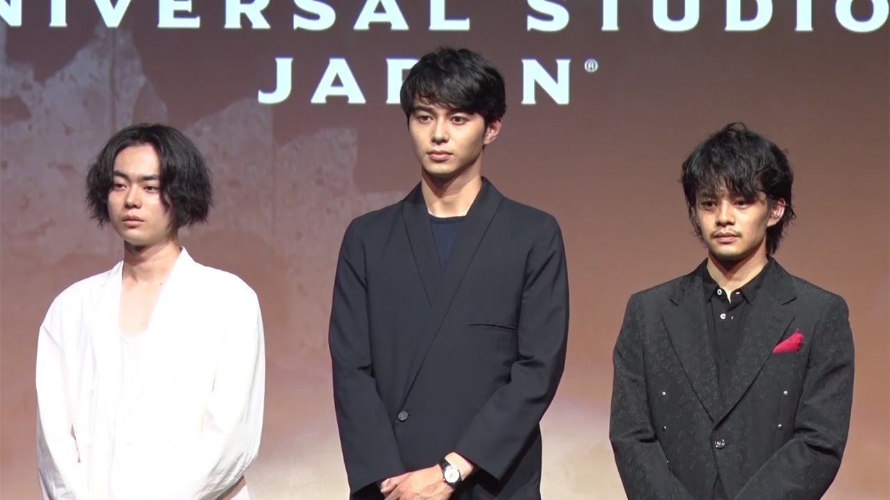 「デスノート・ザ・エスケープ」は、マンガ誌「週刊少年ジャンプ」(集英社)とコラボレートしたアトラクションなどが楽しめるイベント「ユニバーサル・ジャンプ・サマー」の一環。「デスノート」の世界観を再現し、映画「DEATH NOTE Light up the NEW world」に登場する6冊のデスノートのうちの1冊によって巻き起こる事件が描かれ、名探偵「L」と協力して謎を解き明かす……という内容。映画で東出さんは主人公の捜査官・三島、池松さんは三島とともデスノートを追う世界的探偵の竜崎、菅田さんは、三島や竜崎を翻弄(ほんろう)するサイバーテロリストの紫苑をそれぞれ演じている。10月29日公開。