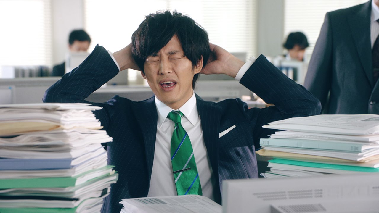 新CM「こんな10倍は嫌だ」編は、10人に分身した上司(緋田さん)から大量の書類を机に置かれた部下(松坂さん)が「いらねー」と話すと、10倍になった給料袋が渡される……というストーリー。緋田さんは撮影で部下に近づく上司10パターン、部下の机に書類を置く10パターン、給料袋を渡す1パターン、松坂さんの息をかぐ10パターンと計31パターンの演技に挑戦。松坂さんは撮影中、緋田さんの“妙技”に思わず笑ってしまうこともあったという。