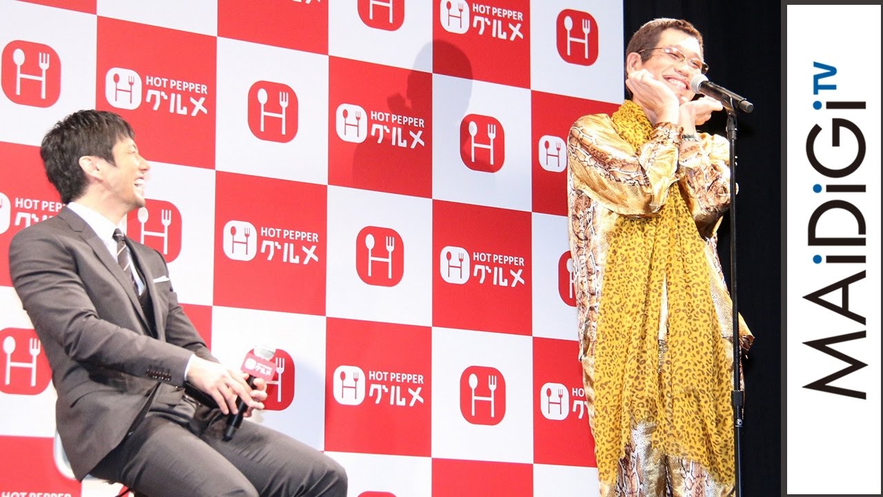 不思議ソング「ペンパイナッポーアッポーペン(PPAP)」で話題のピコ太郎さんと俳優の西島秀俊さんが10日、東京都内で行われたレストラン予約・グルメ情報サイト「ホットペッパーグルメ」新CM発表会に登場。関連動画の総再生回数が5億回に到達するなど世界的にブレーク中のピコ太郎さんだが、司会者から礼儀のよさを褒められると「ほとんどがバイト生活ですから」と苦労人としての顔をのぞかせた。