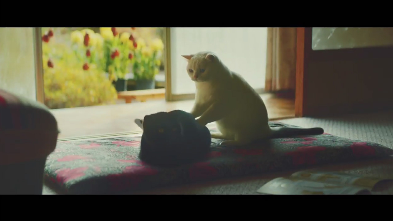 動画は、長野県の山奥に住むおばあさんと一緒に暮らしている白猫と黒猫のもとに、ある日、犬から猫専用の通信講座「ユーニャン」の教材が届けられる。2匹の猫はおばあさんを元気づけるため隠れてこっそりと、肉球で書かれたテキストやDVDを見ながら「肩もみの練習」「しっぽを振る練習」「2本足で立つ練習」などを“勉強”。その後、2匹の猫は、おじいさんの写真を見て涙を流すおばあさんの前で練習の成果を発揮し、おばあさんの笑顔を取り戻す……というストーリー。