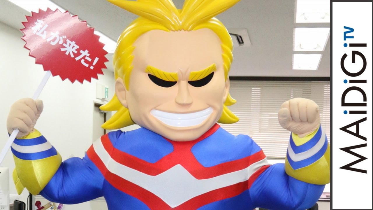 25日にスタートするテレビアニメ「僕のヒーローアカデミア」(読売テレビ・日本テレビ系)の新シリーズに登場するヒーローのオールマイトの着ぐるみが23日、MANTANWEB編集部を訪れた。絶大な人気を誇る“ナンバーワンヒーロー”という設定のオールマイトは「MANTANWEBに、私が来た!」と決めぜりふを交えながら、編集部に現れた。