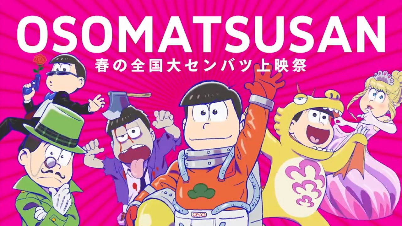 「おそ松部屋」は「逆襲のイヤミ」「スクール松」、「カラ松部屋」は「カラ松事変」「逆ナン」、「チョロ松部屋」は「面接」「ダヨーン族」、「一松部屋」は「エスパーニャンコ」「一松事変」、「十四松部屋」は「恋する十四松」「十四松とサンタ」、「トド松部屋」は「トド松と5人の悪魔」「希望の星、トド松」をそれぞれ上映。テレビ版に引き続き、おそ松を櫻井孝宏さん、カラ松を中村悠一さん、チョロ松を神谷浩史さん、一松を福山潤さん、十四松を小野大輔さん、トド松を入野自由さんが担当している。