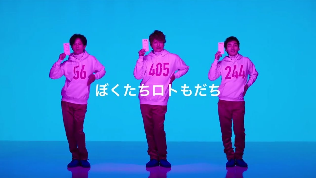 宝くじ「ロト・ナンバーズ」のCM発表会に登場した(左から)稲垣吾郎さん、香取慎吾さん、草なぎ剛さん