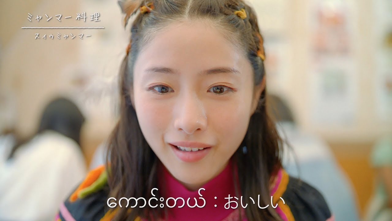 CMでさまざまなアジアの言葉に挑戦することから、石原さんは発音のレクチャーを受けながら練習をして臨んだという。ミャンマー語の発音「カウンデ(おいしい)」がとくに難しかったようで、何度も練習を重ねていたという。