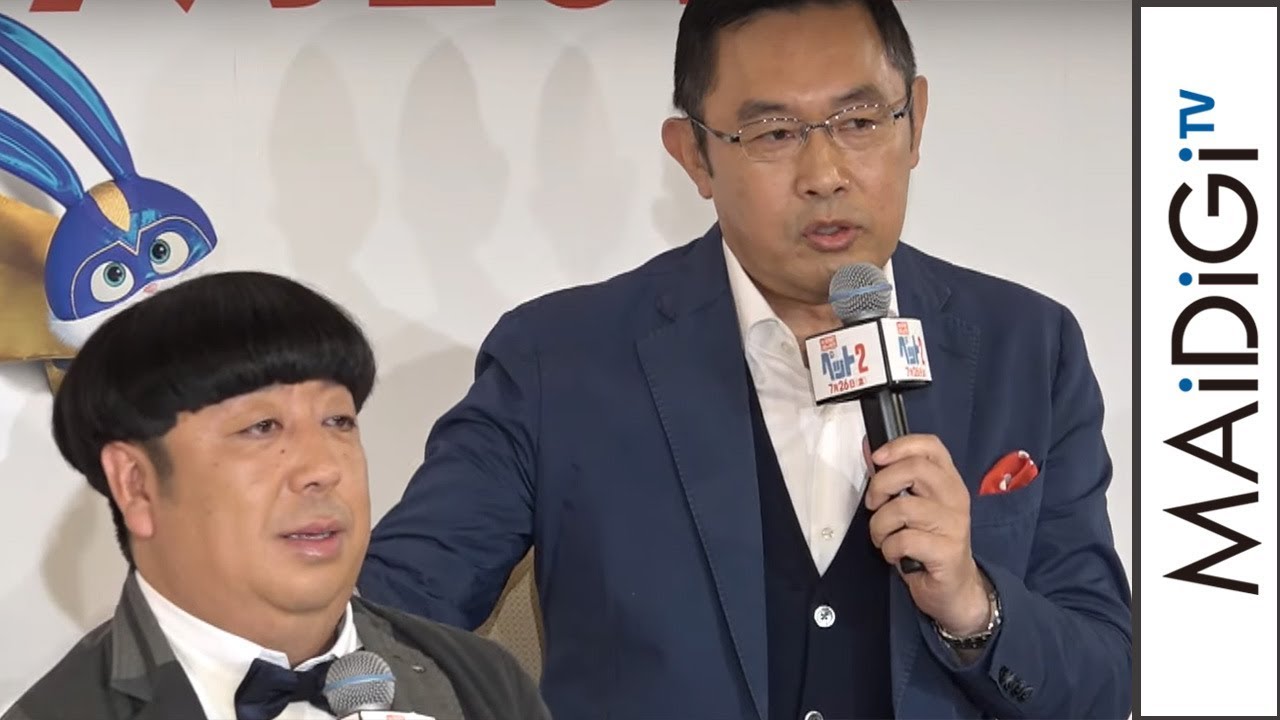 お笑いコンビ「バナナマン」の設楽統さんと日村勇紀さんが6月24日、東京都内で開催された劇場版アニメ「ペット2」(クリス・ルノー監督、7月26日公開)の日本語吹き替え版完成会見に、内藤剛志さんらと登場。3人はプライベートで10年近く交流があるといい、内藤さんは「10年以上ファンで、夏のライブを拝見したりしていて。長めのコントでお芝居みたいなことをやっていて、本当にうまいから、潰しておかないとやばいなと思っていました」と冗談交じりに2人の芝居を絶賛し、周囲を笑わせていた。