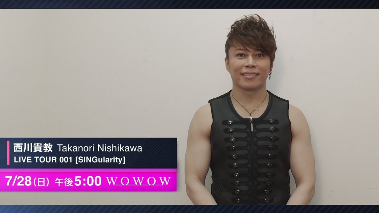 番組「西川貴教 Takanori Nishikawa LIVE TOUR 001 [SINGularity]」は7月28日午後5時にWOWOWライブで放送。