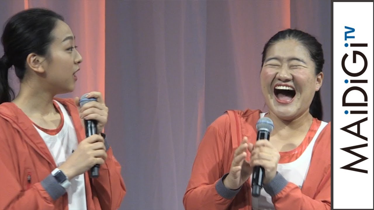お笑いコンビ「ガンバレルーヤ」のよしこさんとまひるさんが9月26日、東京都内で行われた住友生命のイベント「Vitality(バイタリティ)Day 2019」に、フィギュアスケーターの浅田真央さんと姉の舞さんとともに出席した。8月下旬に放送された日本テレビ系のチャリティー番組「24時間テレビ」で、「24時間駅伝」のランナーを務めたよしこさんは、イベント後の会見で「見た通り分かるように、体重が増えましたね」と苦笑いした。