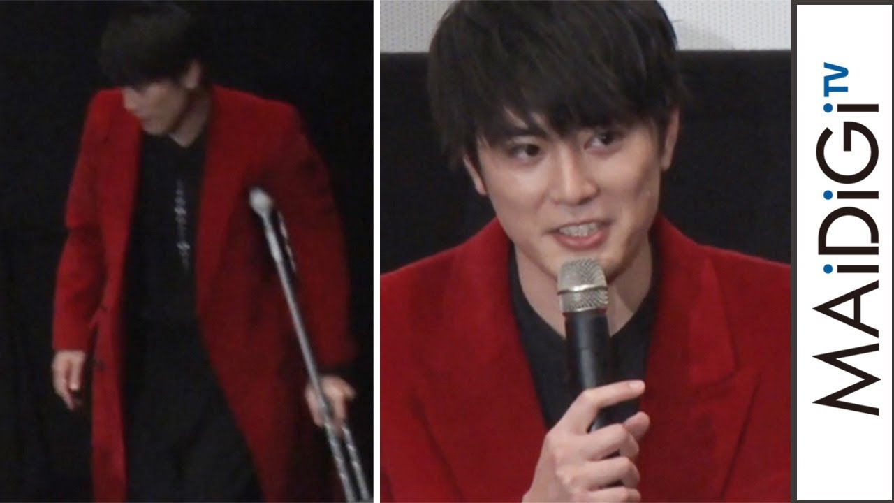 俳優の間宮祥太朗さんが11月15日、東京都内で開催された映画「殺さない彼と死なない彼女(殺カレ死カノ)」(小林啓一監督)の公開初日舞台あいさつに、松葉づえ姿で登場。驚く観客を前に間宮さんは「脚を折ってしまいまして」と告白した。