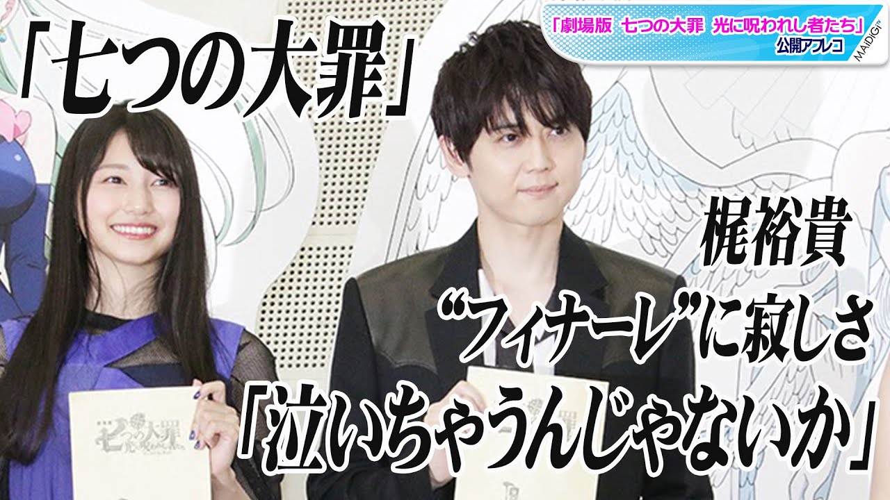 新作劇場版の収録は、テレビシリーズの最終話とほぼ同じタイミングで行われたといい、梶さんは「『七つの大罪』のピークが自分の中に押し寄せてきた。今までの7年間がよみがえるようだった」と振り返った。最後のせりふの収録では「OKが出た時、急にさみしさが胸にこみ上げてきた」と話した。