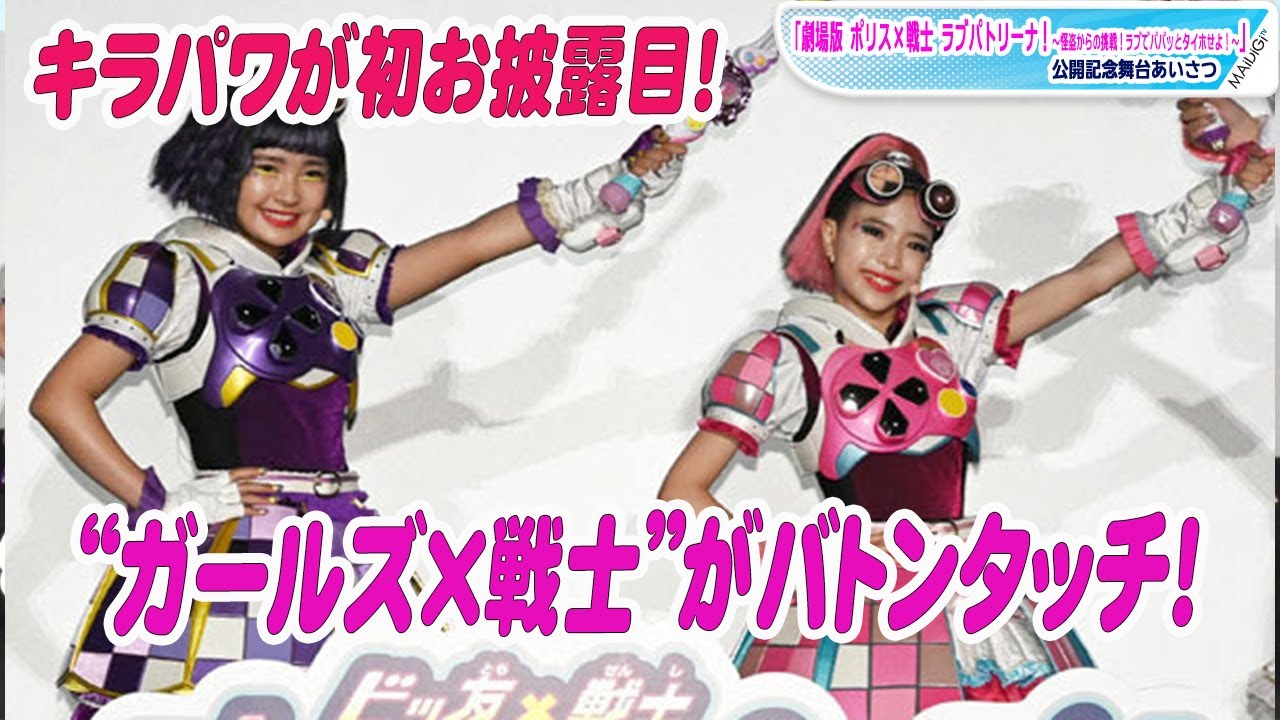 女児向け特撮ドラマ「ガールズ×戦士」シリーズの第4弾「ポリス×戦士 ラブパトリーナ!」の映画「劇場版 ポリス×戦士 ラブパトリーナ! ~怪盗からの挑戦! ラブでパパッとタイホせよ!~」(三池崇史監督)の公開記念舞台あいさつが6月5日、東京都内で開催。7月11日から放送される第5弾「ビッ友×戦士 キラメキパワーズ!(キラパワ)」(テレビ東京系、毎週日曜午前9時)の桃瀬キラリ/キラパワサニー役の永山椿さん、紫守ユヅキ/キラパワムーン役の深澤日彩さんが登場し、公の場で初めてお披露目された。