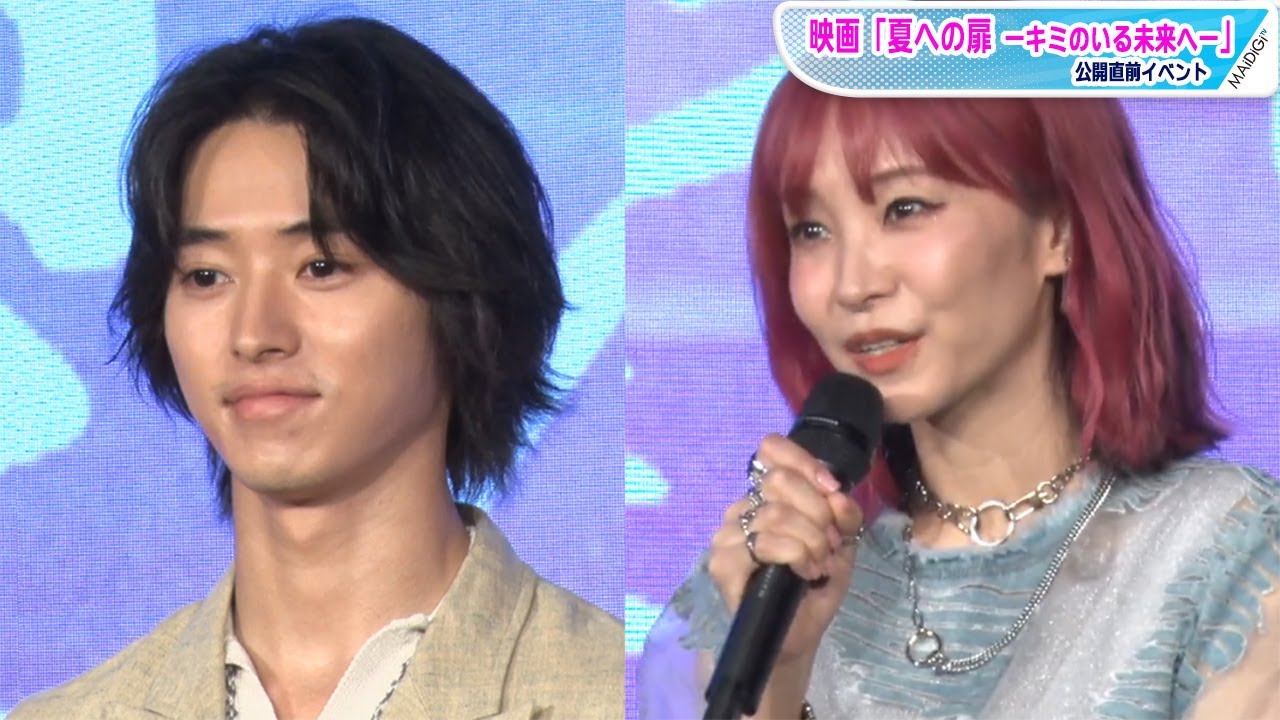 俳優の山崎賢人さんが6月18日、東京都内で行われた主演映画「夏への扉 -キミのいる未来へ-」(6月25日公開)の公開直前イベントに、三木孝浩監督と登場した。イベント開始後、歌手のLiSAさんが呼び込まれ、本作の主題歌「サプライズ」を生披露。聴き終えた山崎さんは「最高でした。未来に向かって頑張ろうと思えるポジティブなLiSAさんの力強い歌声が生で聴けて、本当に幸せでした」とLiSAさんの声を絶賛し、感激していた。