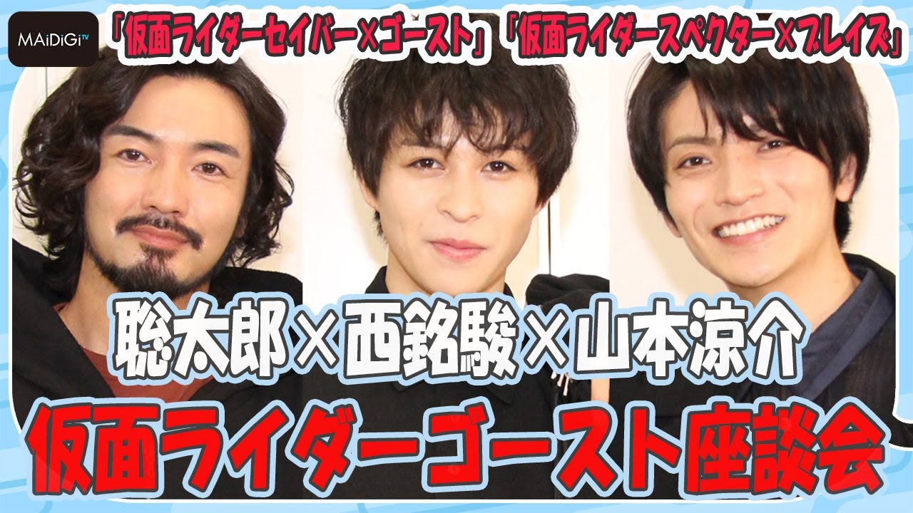 特撮ドラマ「仮面ライダーゴースト」(2015~16年)と「仮面ライダーセイバー」(テレビ朝日系、日曜午前9時)のスピンオフ「仮面ライダーセイバー×ゴースト」「仮面ライダースペクター×ブレイズ」が、アプリサービス「東映特撮ファンクラブ(TTFC)」で独占配信中だ。仮面ライダーゴースト/天空寺タケル役の西銘駿さん、仮面ライダースペクター/深海マコト役の山本涼介さん、ジャベル役の聡太郎さん、マコトの妹・深海カノン役の工藤美桜さんらオリジナルキャストの出演も話題の両作。撮影では、口をそろえて「工藤さんの成長を実感できた」という西銘さん、山本さん、聡太郎さんに、「ゴースト」の思い出やスピンオフについて話を聞いた。