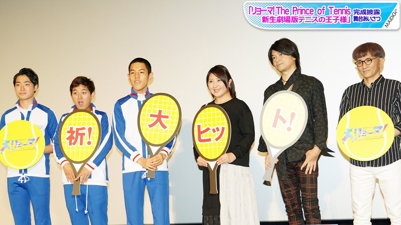 許斐剛(このみ・たけし)さんの人気テニスマンガ「テニスの王子様」のフル3DCGの新作劇場版アニメ「リョーマ!The Prince of Tennis 新生劇場版テニスの王子様」(神志那弘志監督、9月3日公開)の完成披露舞台あいさつが8月21日、TOHOシネマズ六本木ヒルズ(東京都港区)で開催され、原作者で同作の製作総指揮を務める許斐さん、主人公・越前リョーマ役の皆川純子さん、神志那監督が登場した。テレビアニメが今年20周年を迎えることも話題となっており、許斐さんが皆川さんに「リョーマを彼女がやってくれてよかった。20年間、格好いいリョーマを演じてくれた。これからもリョーマをよろしくね」と伝えると、皆川さんは「うぃっす!」とリョーマさながらに答え、笑顔を見せた。