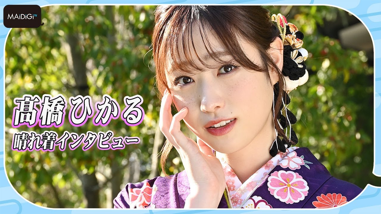 晴れ着姿でインタビューに応じた高橋ひかるさん