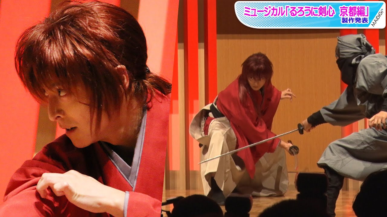 ミュージカル「るろうに剣心 京都編」の製作発表会見で殺陣を披露した小池徹平さん