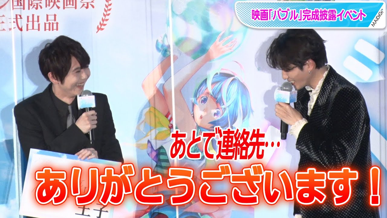 アニメ「進撃の巨人」などの荒木哲郎監督の劇場版オリジナルアニメ「バブル」(5月13日公開)の完成披露イベントが4月7日、丸の内ピカデリー(東京都千代田区)で行われ、主人公・ヒビキ役の志尊淳さん、カイ役の梶裕貴さんら声優陣が登場した。同作がアンデルセンの「にんぎょ姫」をベースにしていることにちなみ、イベントでは登壇者が自分を「〇〇姫」「〇〇王子」と例えるコーナーがあり、梶さんは自身が「人見知り王子」であることを明かした。