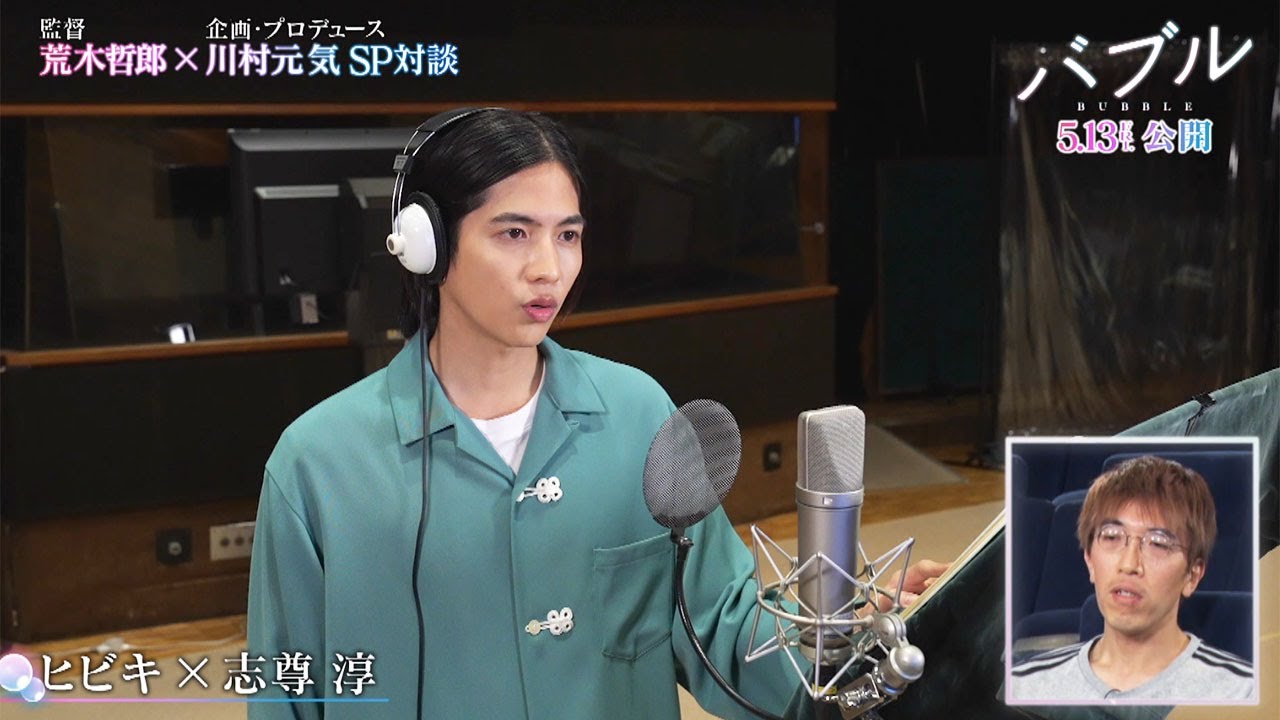 メーキング映像では、主人公・ヒビキの声優を務めた志尊淳さんのアフレコシーンもお披露目された。荒木監督は「志尊さんは『体を動かしたほうがよりリアルなお芝居が引き出せる』といって、ひざまずいてみたり、マイクを下に置いてみたりといった、普段のアニメアフレコではやらないような、身体で芝居できるような環境を作ってくれました」と明かした。