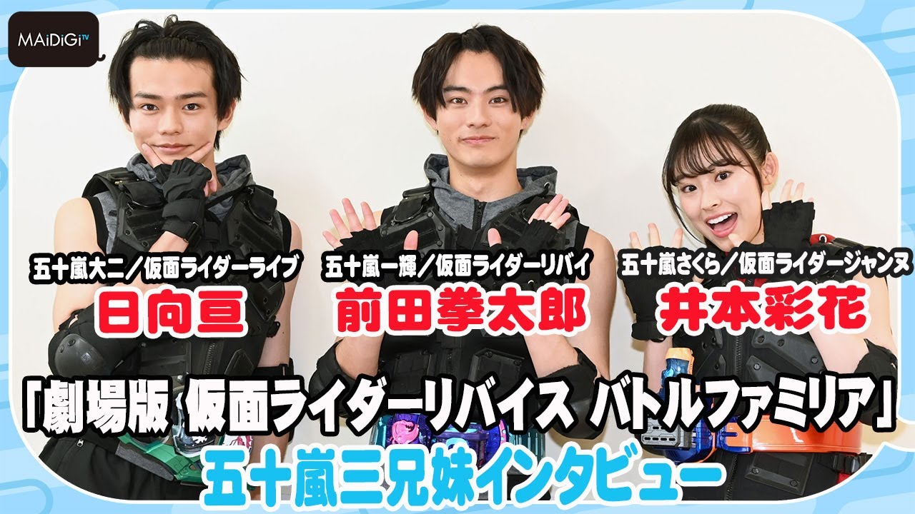 特撮ドラマ「仮面ライダーリバイス」(テレビ朝日系、日曜午前9時)の映画「劇場版 仮面ライダーリバイス バトルファミリア」が7月22日に公開される。クライマックスに向けて盛り上がりを見せる本編について、「終わりが近いという感じですね」と話す。主人公・五十嵐一輝役の前田拳太郎さん、五十嵐大二役の日向亘さん、五十嵐さくら役の井本彩花さんの“五十嵐三兄妹”に、放送開始からこれまでの反響や思い出、互いの変化、劇場版について聞いた。