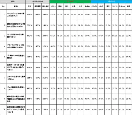セ・リーグDH制導入に賛成過半数はセ・リーグ内では2球団のファンのみ(巨人ファン66%、DeNAファン52%)