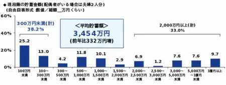 貯蓄額の平均が大きく伸びた一方で、約4割が「300万円未満」、3割以上が「2,000万円以上」と、貯蓄格差が際立つ結果となりました。
