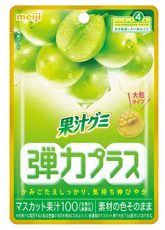 株式会社 明治(代表取締役社長:松田 克也)は、くだもののおいしさがギュッとつまった「果汁グミ」ブランドより、香り高いマスカット果汁のおいしさとハードな食感を楽しめる「果汁グミ弾力プラスマスカット」を、2023年8月22日から全国にて発売します。