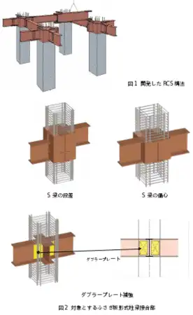 「新井組・松村組RCS 構法-柱梁接合部をふさぎ板で覆った鉄筋コンクリート柱・鉄骨梁混合構造」