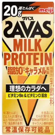「(ザバス)MILK PROTEIN(ミルクプロテイン)脂肪0キャラメル風味」(200ml) 希望小売価格:221円(税込)