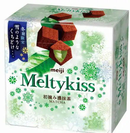 1992年の発売以来、冬期限定チョコレートの定番商品として親しまれてきた「メルティーキッス」は、雪のようなくちどけと、ミルクとカカオが織りなすクリーミーでコクのある味わいが特長の商品です。「メルティーキッス初摘み濃抹茶」は、愛知県西尾産の初摘み抹茶を使用し、苦みや渋みの少ない、抹茶の旨味がもっとも感じられる仕立てにこだわりました。口に入れた瞬間からとろけだす雪のようなくちどけと、くちどけとともに広がるふくよかな抹茶の香りと旨味をお楽しみいただけます。パッケージは、当ブランドの持つくちどけや、繊細さといった世界観を踏襲しつつ、外国の方にも抹茶味のチョコレートであることやくちどけの良さが伝わりやすいデザインとしました。これにより、「日本の素材とお菓子を知っていただく」きっかけを創出し、インバウンド需要の活性化を図ります。