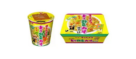 今回は石川県が誇るご当地調味料 まつや「とり野菜みそ」とコラボして、「明星 チャルメラカップ とり野菜みそラーメン」 「明星 チャルメラ とり野菜みそ焼そば」を発売します。「とり野菜みそ」は石川県では定番の鍋用のみそで、味わい深い風味とコクがあり、何度でも食べたくなる味です。「明星 チャルメラカップ とり野菜みそラーメン」はまろやかなみそと野菜のうまみを感じるラーメン、「明星 チャルメラ とり野菜みそ焼そば」は、まろやかなみそを合わせたソースが麺に絡む濃厚な焼そばに仕立てました。どちらも鍋の具材をイメージした野菜が入っています。