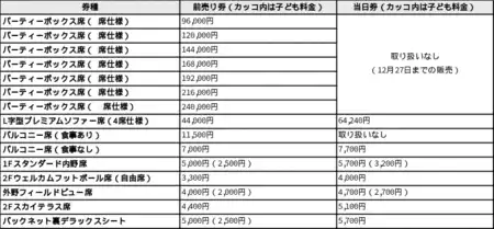 ※チケットご購入の際はベンチエリアを必ずご確認ください。
