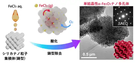 【画像:https://kyodonewsprwire.jp/img/202507011472-O3-9gg79vB0】 図1 α-Fe2O3ナノ多孔体の合成