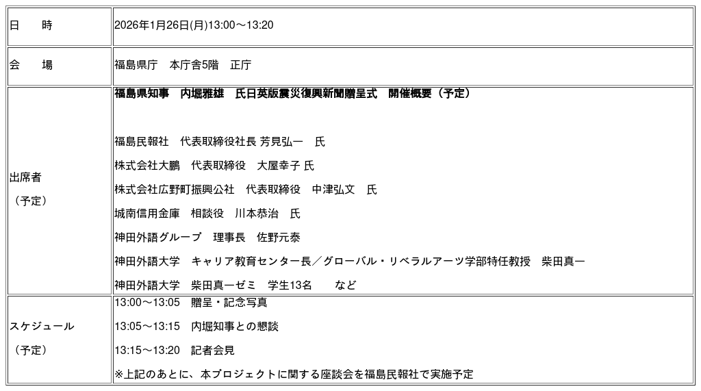 日英版震災復興新聞贈呈式 開催概要(予定)