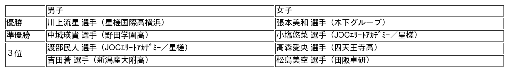 ~ジュニア日本一は川上流星選手と張本美和選手~