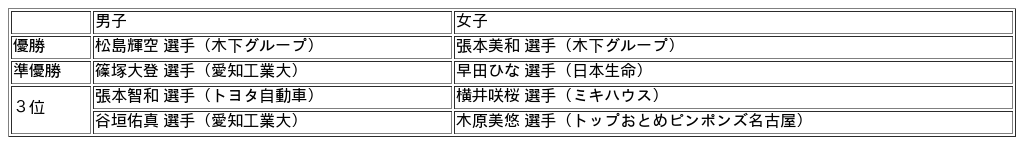 ~男女シングルス日本一は松島輝空選手と張本美和選手~