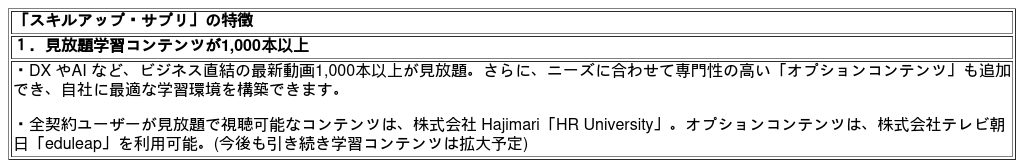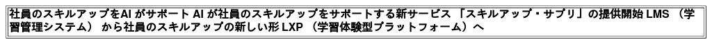 『スキルアップ・サプリ』は、社内での研修を推進される経営者や人事・研修部門の方々の効率良い研修の運営や推進のみならず、社員一人ひとりのまなびをAI がサポートすることで、より効率良く学習を進められ、さらには主体性を持って自身の学びやスキルアップに取り組みを促すことが可能となる新たな学びの体験をご提供できると自負しております。