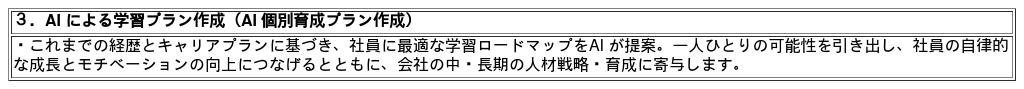 「スキルアップ・サプリ」は、社員のスキルアップをサポートするAI があらかじめ組み込まれているため、この「スキルアップ・サプリ」を利用するだけで、社員はプロンプトを意識せずに最新のAI をフル活用していることになります。