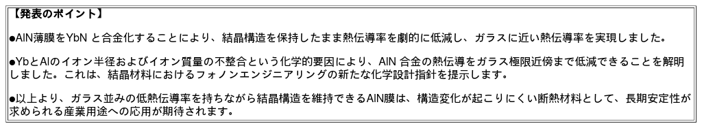 YbN 合金化により AlN 薄膜の熱伝導を大幅抑制